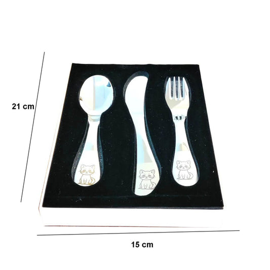 Paslanmaz Çelik Kutulu Çocuk Çatal Kaşık Bıçak Seti