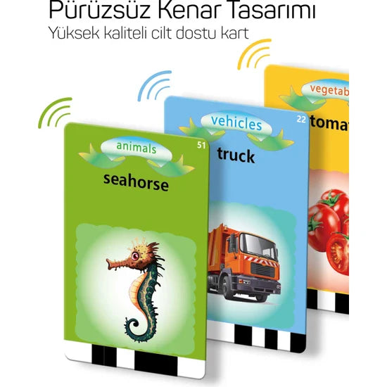 Renkli kartlar, doğru telaffuz ve çift dil desteği ile çocuklarınız 224 kelimeyi kolayca öğrenir. Ekransız, güvenli ve keyifli bir öğrenme deneyimi sunar!